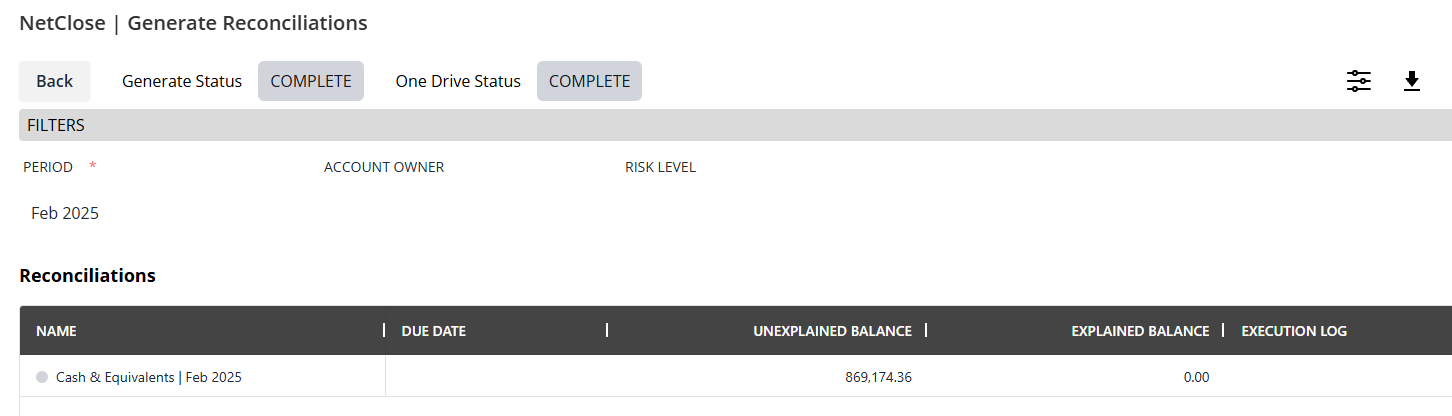 NetClose - Generate Reconciliations