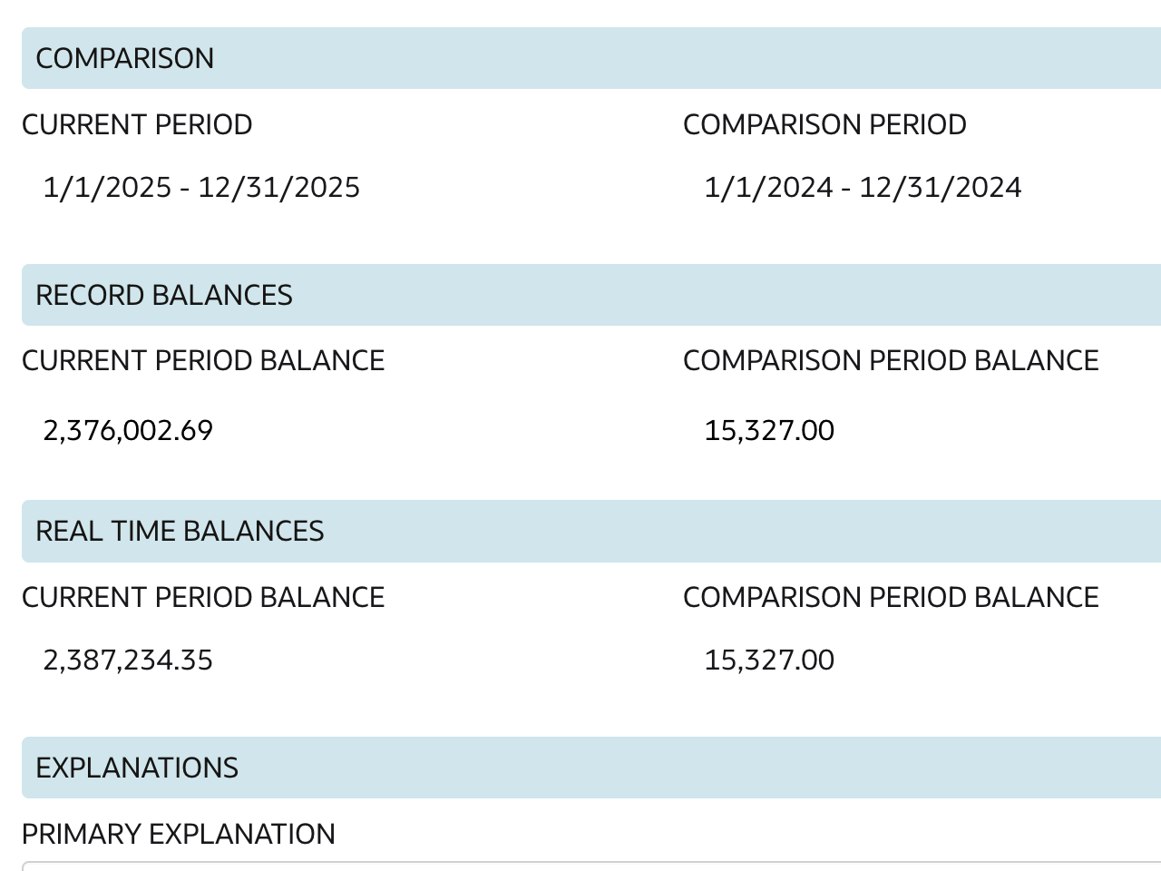 - Users can also filter for flux analysis records that had their balance change using the quick filter