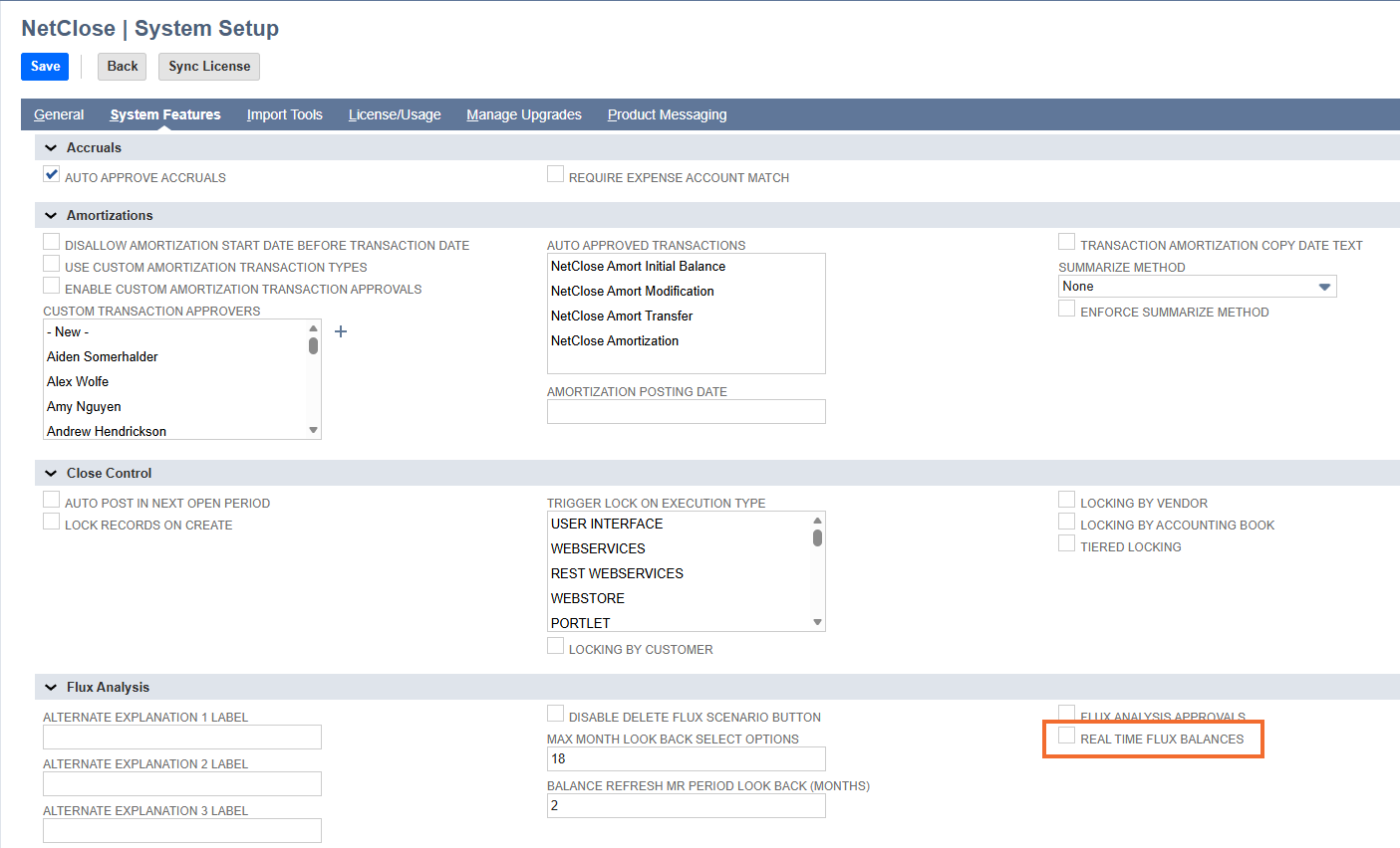 To enable this, navigate to NetClose > Setup > System Setup > System Features > Real Time Flux Balances.