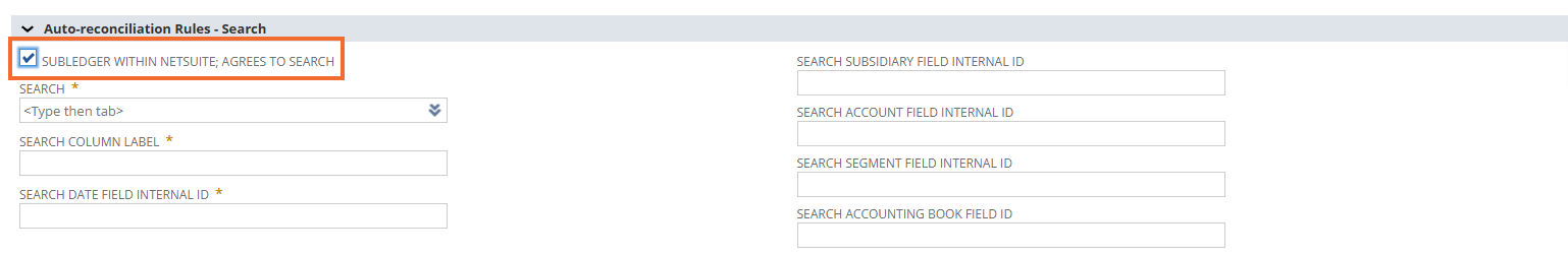 | Search Subsidiary Field Internal ID | If segregating your account grouping by subsidiary custrecord_laa_ls_subsidiary |