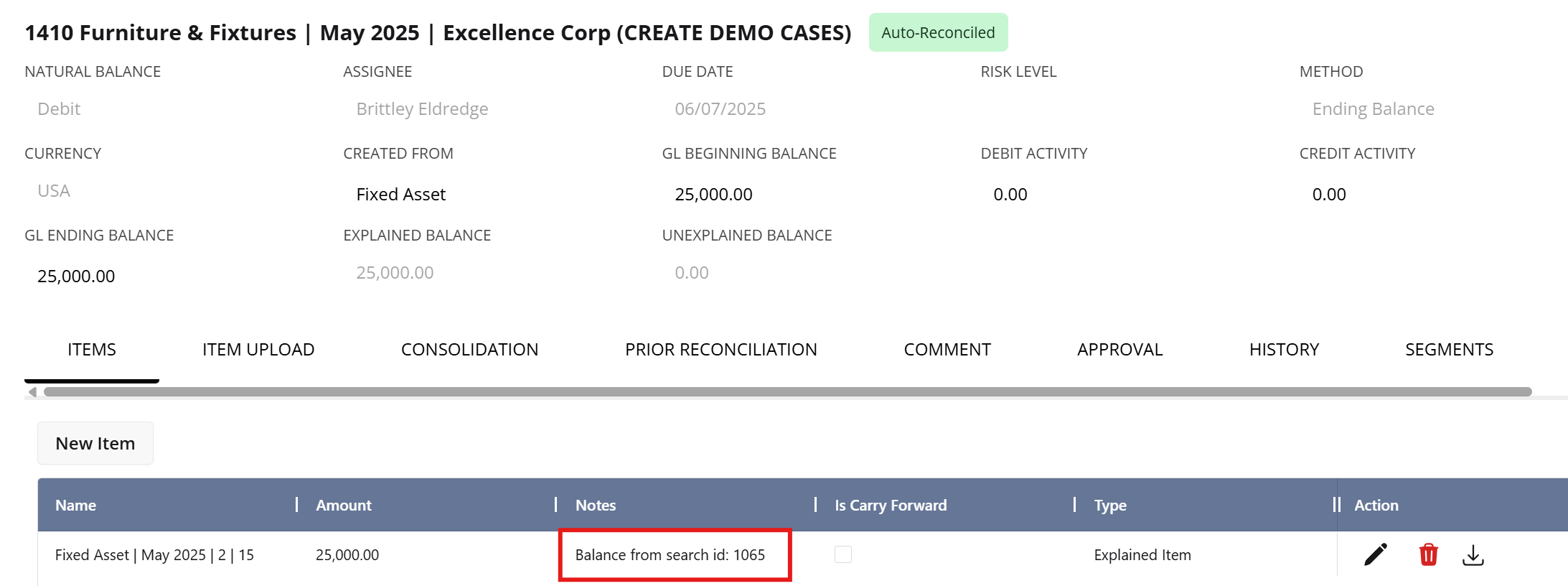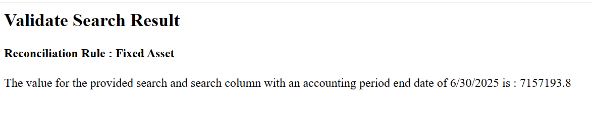 If the saved search pulls a different amount than what is listed as the "GL Ending Balance", click on the item and download the search. This will allow you to reconcile the differences. Most likely there are assets missing, extra assets, or assets with the wrong amounts. This could be an issue with the saved search criteria or filters, it could be a reconciliation issue, or an FX adjustment difference if your subsidiaries have different currencies.