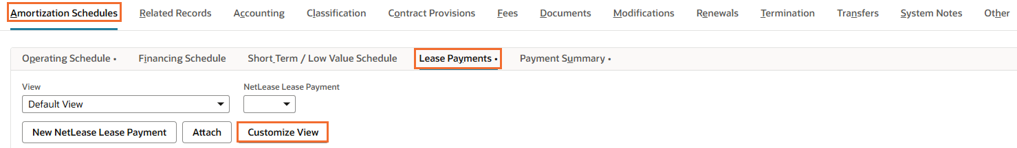 - Under the Amortization Schedules subtab, select the Lease Payments sublist.