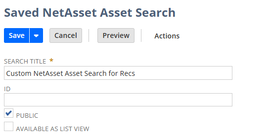 5. Save the New Saved Search. You may preview it to make sure all the assets are pulling in to the search correctly.