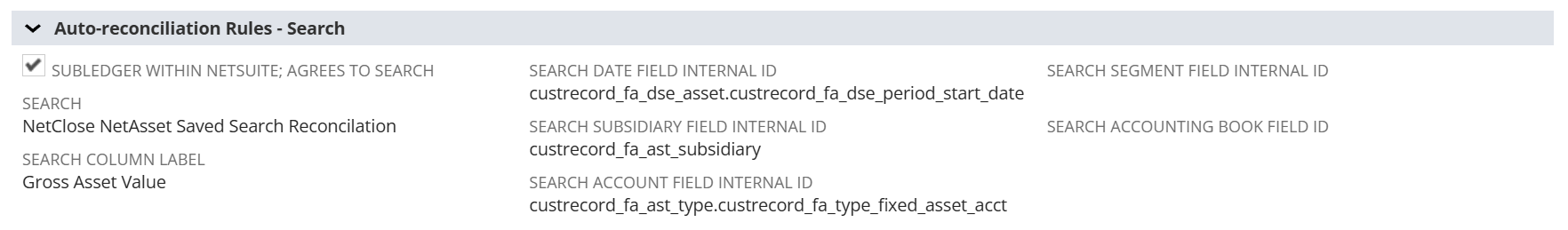 | Search Subsidiary Field Internal ID* | custrecord_fa_ast_subsidiary |