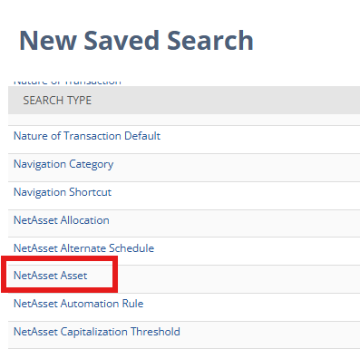 | Search Account Field Internal ID* | custrecord_fa_ast_type.custrecord_fa_type_fixed_asset_acct |