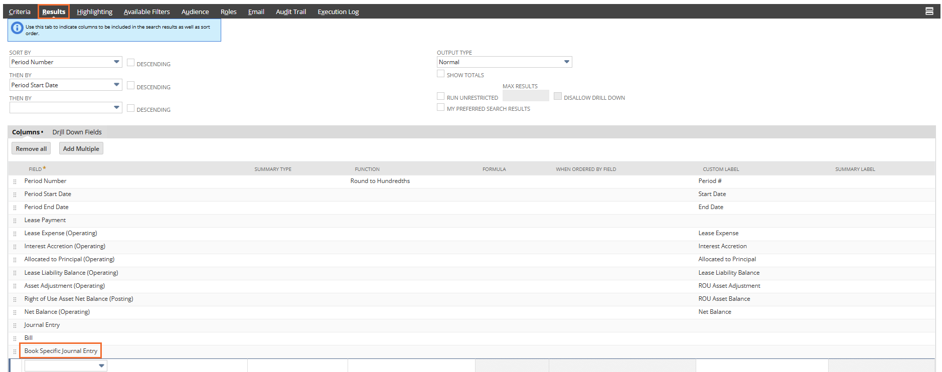 A common use case is adding the Book Specific Journal or Book Specific Reversal Journal column for leases using multi-book functionality, enabling users to quickly identify and access the journal entries posted to secondary accounting books.