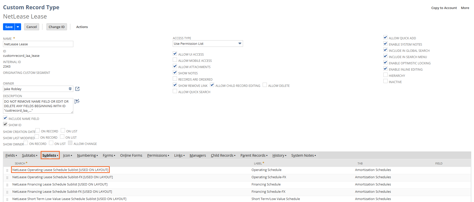 • Navigate back to Customization > Lists, Records, & Fields > Record Types, and then reselect the NetLease Lease custom record from the list of record types.
