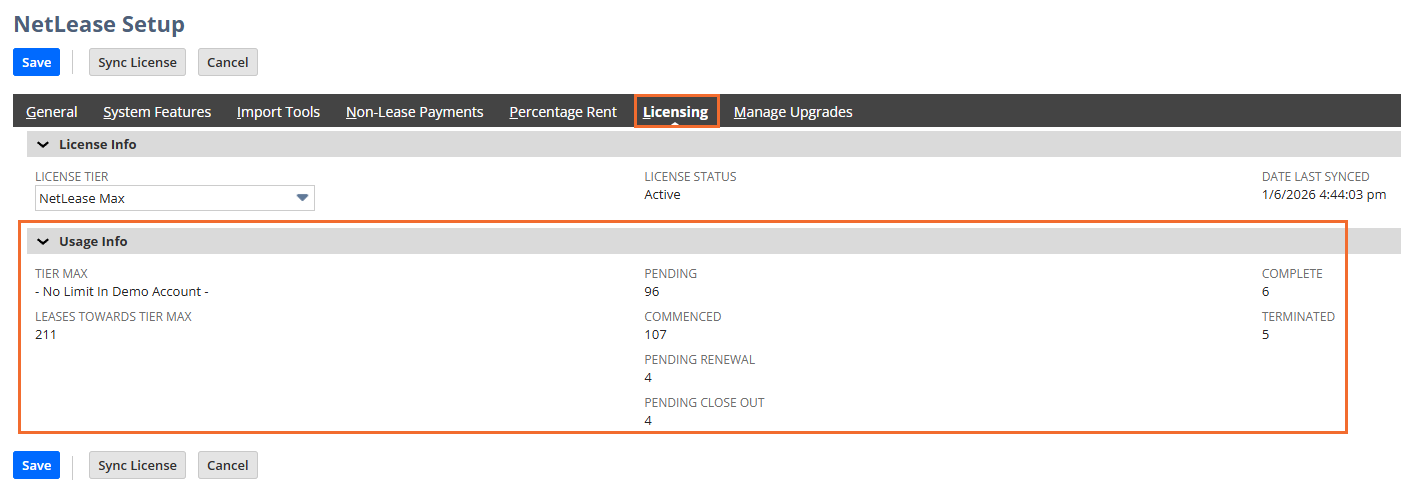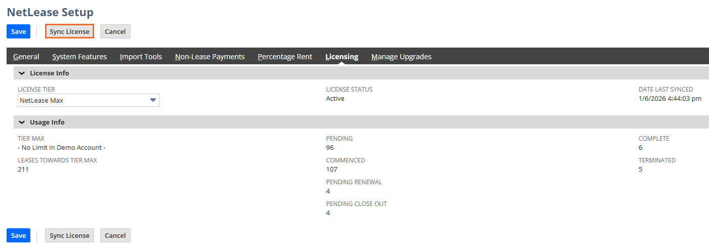 - Click Sync License to refresh data.