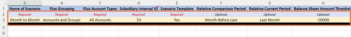 - Fill out the applicable information in the NetClose Flux Templateon the "Flux Scenario Template" tab