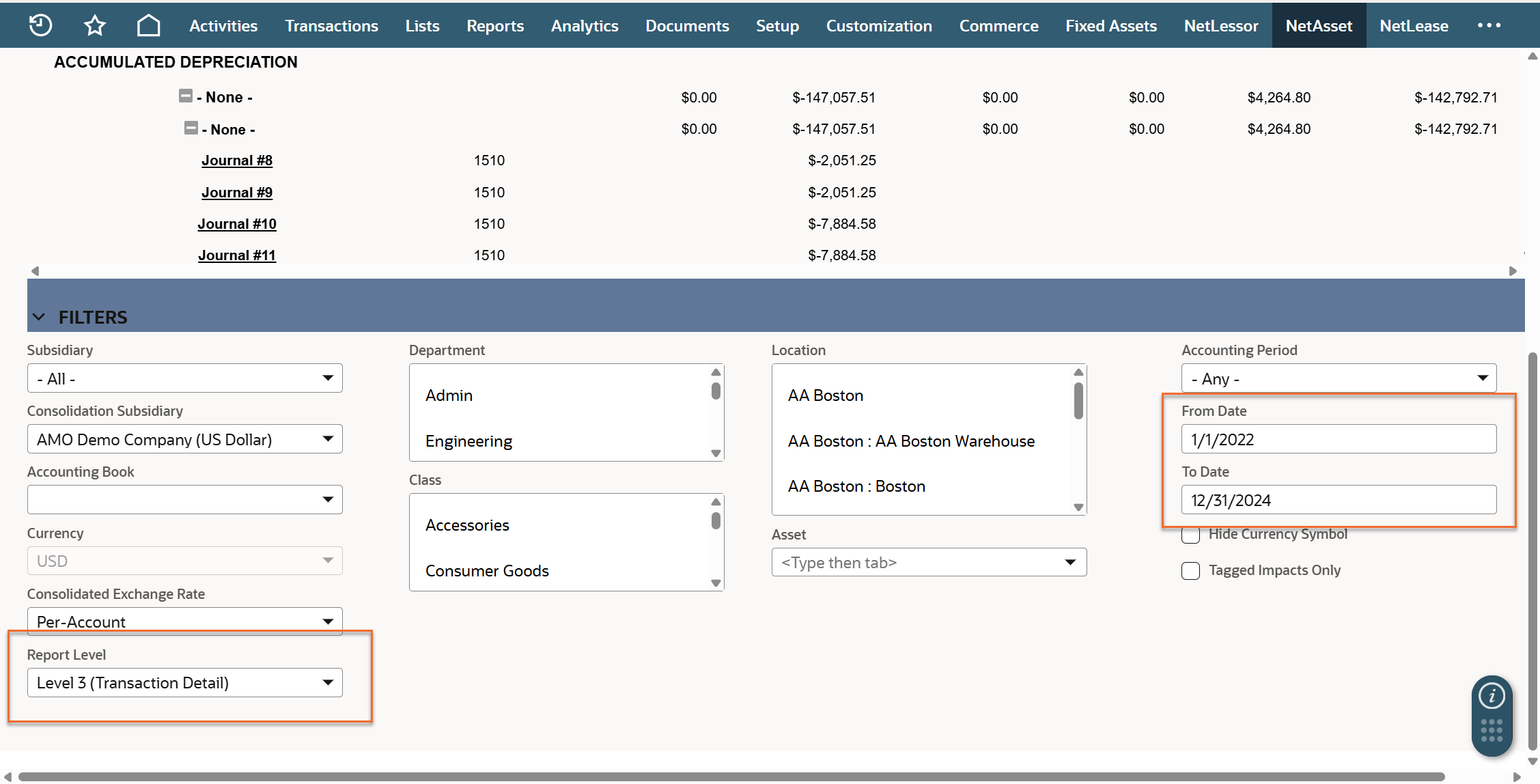 - Accumulated Depreciation: NetAsset Depreciation Entries
