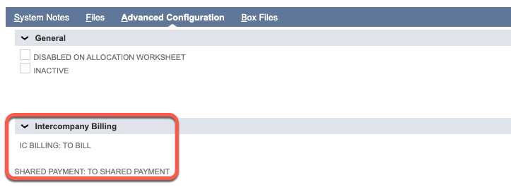 • IC Billing: To Bill: This field controls where a value ends up on the Intercompany Vendor Bill. When Shared Transactions creates a Vendor Bill from an Intercompany Invoice, it can copy field values from the Invoice to the Bill. The "To Bill" setting tells the system which field on the Bill should receive the value. Example: You create a sourcing record for the Entity field. You set "IC Billing: To Bill" to Entity. When the Bill is generated, the Entity value from the Invoice will be written to the Entity field on the Bill.