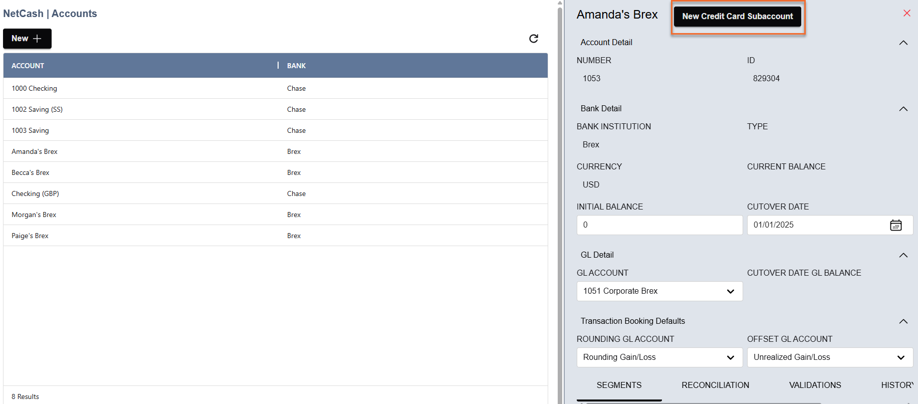 NetCash supports both Bank and Credit Card Account reconciliations within NetSuite. In NetCash, Credit Card configuration, matching, and reconciliations generally follow the same processes as Bank Accounts, with a few exceptions. In this article we will walk through the Credit Card setup in NetCash.