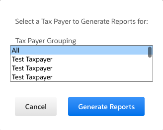 Navigate back to the Tax Year page(s), click Generate Tax Reports. Select a Tax Payer grouping and click Generate Reports. Repeat this process for each Tax Year.