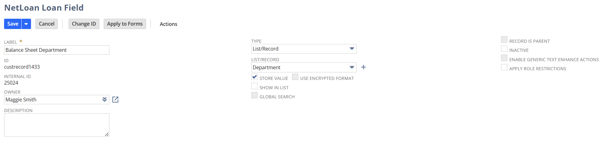 1. Add Field to the NetLoan Loan Form. This is the field that the custom sourcing will look to for the segment retagging on transactions.